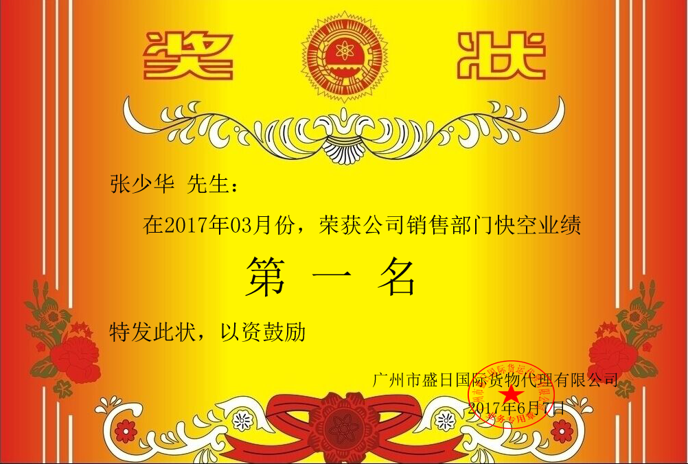 2017年3月份快(kuài)空(kōng)銷售部優秀員工(gōng)