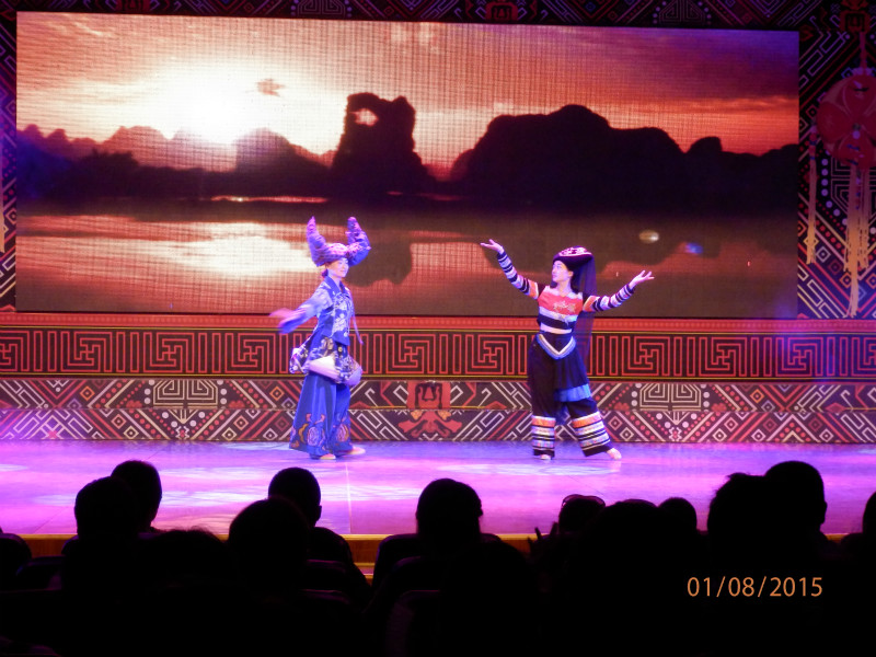 吃過飯後,我們來(lái)到(dào)了(le)---劉三姐(jiě)大(dà)觀園,這(zhè)裏主要展示苗,瑤,壯,侗少數民族的文(wén)化風(fēng)情。裏面有吊樓台,風(fēng)雨橋,對(duì)歌台,鬥雞比賽和(hé)民族節目表演。湖中央的那個對(duì)歌台,有跟我們“阿哥(gē)”對(duì)唱,在電影《劉三姐(jiě)》中,有在大(dà)榕下(xià)阿牛哥(gē)和(hé)劉三姐(jiě)互定百年的情節。