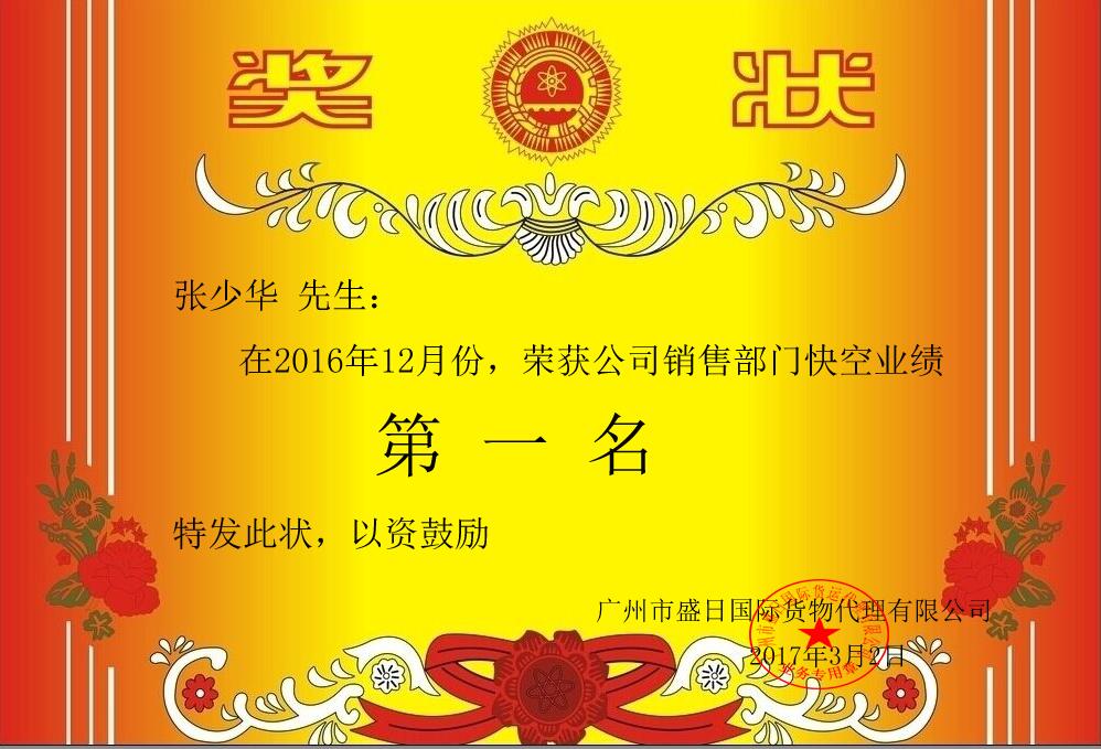 2016年12月份快(kuài)空(kōng)銷售部優秀員工(gōng)